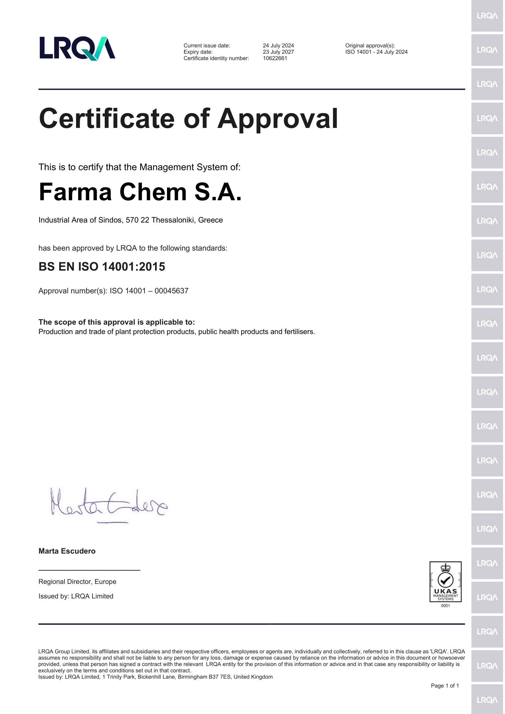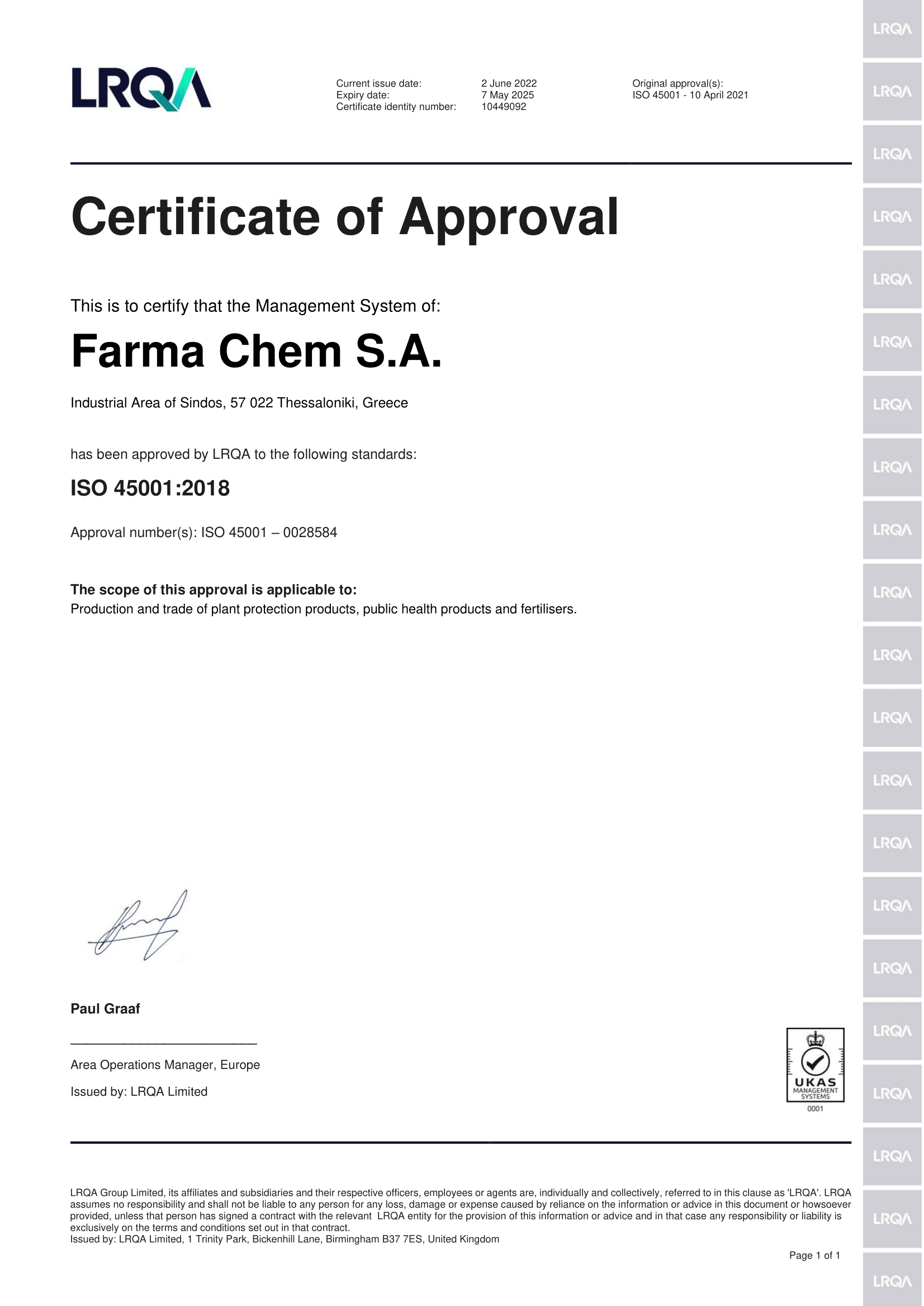 All of us at FARMA-CHEM SA are committed to continuously improving the quality of our products, services and functions.